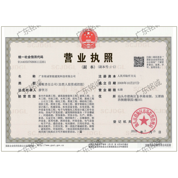 廣東銘誠智能建筑科技有限公司成立于2008年,公司注冊(cè)資金為6000萬元,集辦公裝修、酒店裝修、家庭裝修、軟裝裝飾、娛樂場(chǎng)所裝修為一體的裝飾公司,率先提出“創(chuàng)造現(xiàn)代人文空間,挑戰(zhàn)業(yè)界高峰”的雄壯口號(hào),并以此為目標(biāo),完成了一大批具有影響力的大型公裝工程:其中包括廣州國際中醫(yī)藥展貿(mào)中心、奧飛澄海音樂廳、澄海區(qū)國家稅務(wù)局、澄海興信小額貸款、澄海潮商村鎮(zhèn)銀行、汕頭龍湖賓館、澄海豪庭大酒店、御園國際飲食城、澄海福晉軒酒家、享樂匯保健有限公司、假日商務(wù)酒店、尚景康園物業(yè)、星輝車模股份有限公司、奧飛動(dòng)漫有限公司、香港國際玩具、汕頭萬基貿(mào)易有限公司、泰興源實(shí)業(yè)有限公司、汕頭皇冠玩具有限公司等;家裝工程包括南澳黃金海岸整幢的精裝房、中信華府、富春華庭、金信鳳凰名城、凱旋花園、中信金城、柏嘉半島、陽光海岸、金葉島等高等住宅。 ? 廣東銘誠智能建筑科技有限公司經(jīng)過十余年的建筑裝飾裝修施工領(lǐng)域項(xiàng)目積淀,于2018年2月取得“建筑裝修裝飾工程專業(yè)承包二級(jí)”、“建筑機(jī)電安裝工程專業(yè)承包三級(jí)”、“建筑工程施工總承包三級(jí)”、“施工勞務(wù)不分等級(jí)”、“安全生產(chǎn)許可證”等專業(yè)資質(zhì),并于2021年8月建筑裝修資質(zhì)正式升級(jí)為“建筑裝修裝飾工程專業(yè)承包一級(jí)”。這是對(duì)企業(yè)規(guī)模、工程業(yè)績(jī)、管理水平、誠信表現(xiàn)的肯定,是企業(yè)實(shí)力與能力的展現(xiàn)。 ? 公司每一項(xiàng)工程都始終堅(jiān)持“精美設(shè)計(jì)、精心施工、確保合同承諾;勤奮開拓、追求突出、創(chuàng)造時(shí)代精品”的質(zhì)量方針,力爭(zhēng)做一項(xiàng)工程,樹一座豐碑。 ? ?銘誠擁有一支由專業(yè)的營銷精英和客戶顧問組成的營銷隊(duì)伍,勤奮、敬業(yè)的每一位銘誠員工將本著“贏在別人休息時(shí)”的專業(yè)精神,為客戶提供全程營銷及售后服務(wù),確??蛻舻暮戏ɡ?,提供體貼周到的服務(wù),做到讓顧客滿意。 ? 銘誠擁有一批資老牌室內(nèi)環(huán)境設(shè)計(jì)師,以“現(xiàn)代人文空間”為設(shè)計(jì)理念,為客戶提供人性化、差異化、智能化的室內(nèi)環(huán)境設(shè)計(jì)服務(wù),準(zhǔn)確的將人性化特點(diǎn)與室內(nèi)環(huán)境相融合,達(dá)到了“現(xiàn)代人文空間”的和諧統(tǒng)一。 ? ? ? ?自主創(chuàng)新、視社會(huì)責(zé)任為己任的精神使我們?cè)诎l(fā)展的道路上屢獲殊榮:不斷提升的銘誠品牌知名度和美譽(yù)度,靠的是優(yōu)質(zhì)的產(chǎn)品,靠的是不斷提升的營業(yè)績(jī),靠的是國內(nèi)的核心技術(shù)和誠信的服務(wù)。相信通過銘誠人的努力,銘誠將會(huì)不斷以新的姿態(tài)為提升廣大消費(fèi)者的生活質(zhì)量做好服務(wù),為中國裝飾行業(yè)設(shè)計(jì)創(chuàng)新做出突出貢獻(xiàn)。 ? ? “忘掉競(jìng)爭(zhēng)、共